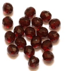 Broušené perle-OHŇOVKA-rubín, 8mm, baleno po 25ks